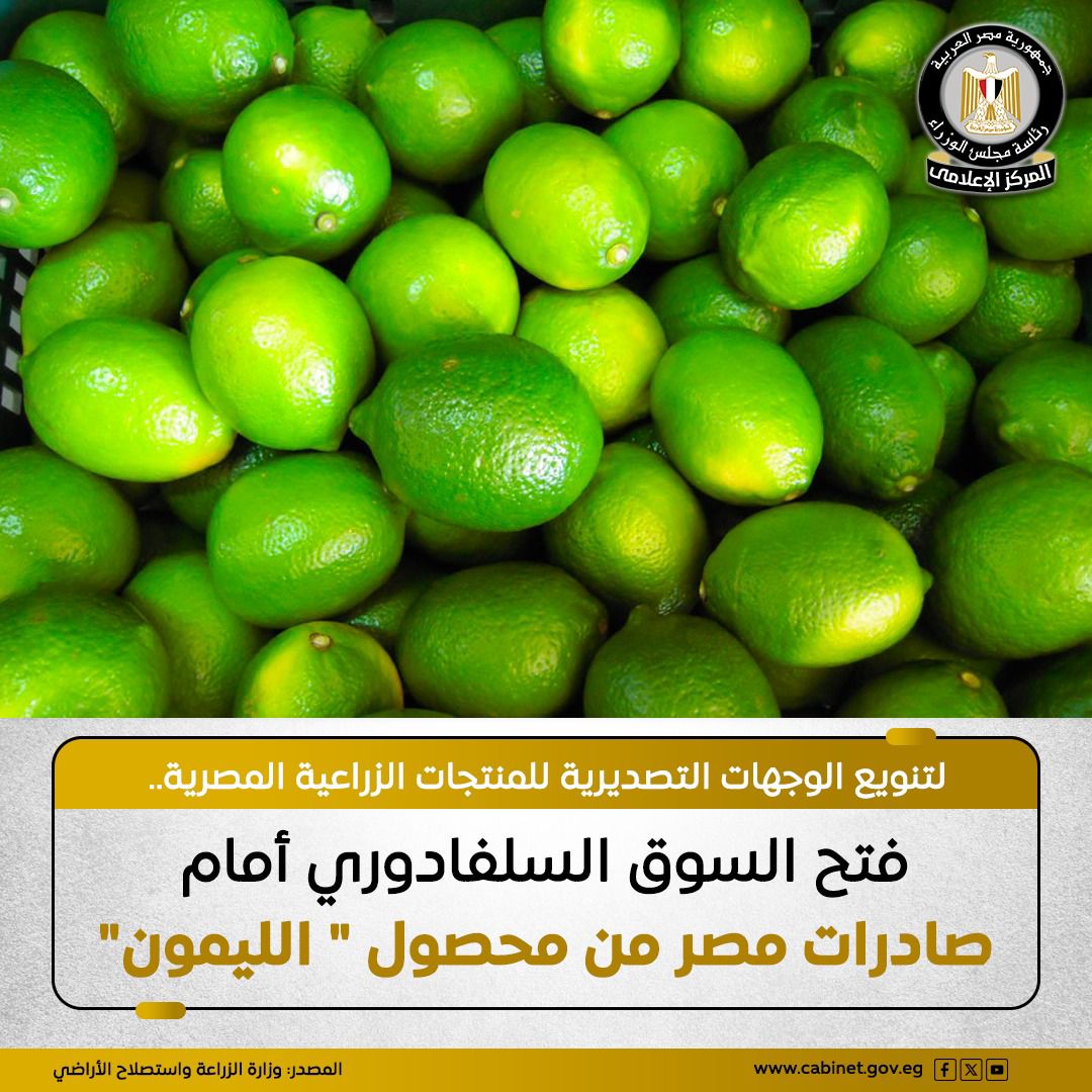 وزارة الزراعة تُعلن فتح السوق السلفادوري أمام صادرات مصر من “الليمون”