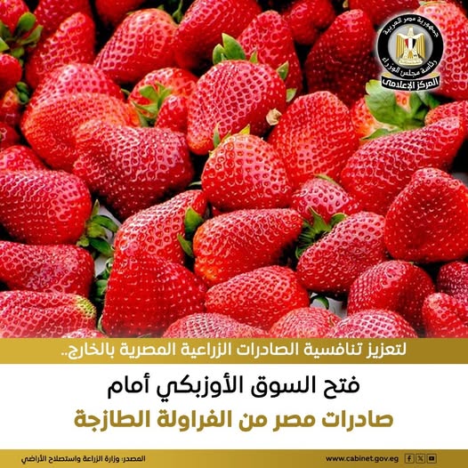 وزارة الزراعة تُعلن عن فتح السوق الأوزبكي أمام صادرات مصر من الفراولة الطازجة