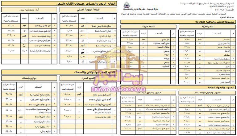 وينشر موقع “بيت التجار” تفاصيل تقرير الاسعار اليوم الاربعاء 16-3-2022 كما اعلنته الغرفة التجارية للقاهرة.