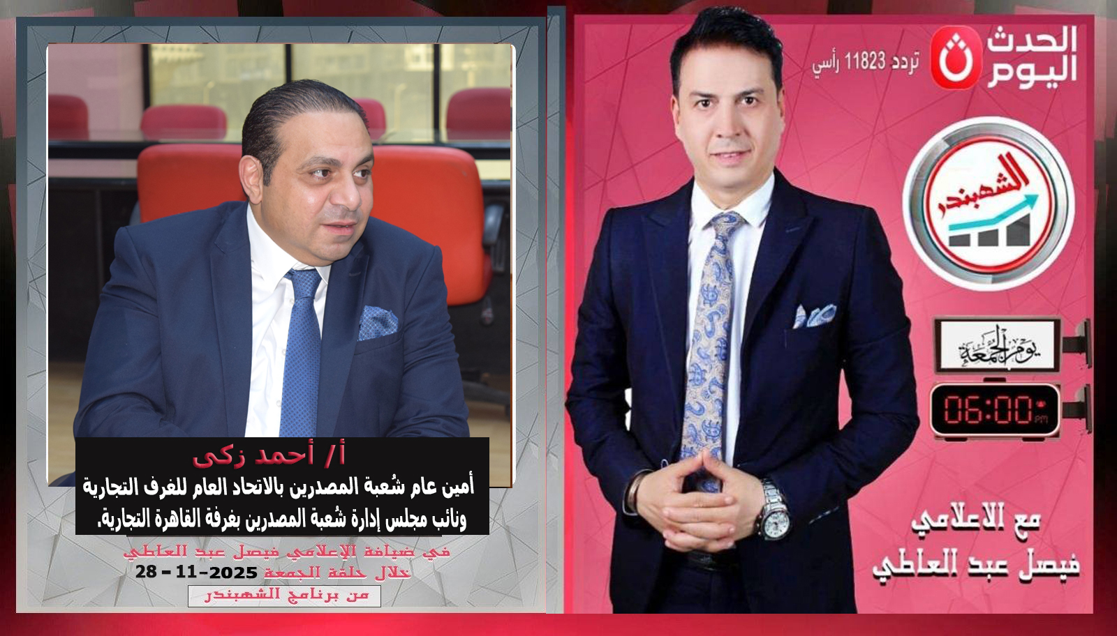 الجمعة السادسة مساءً أمين عام شُعبة المُصدِّرين باتحاد الغرف التجارية في ضيافة الشهبندر حول ملف الصادرات المصرية وأهمية تأهيل الشباب لسوق العمل